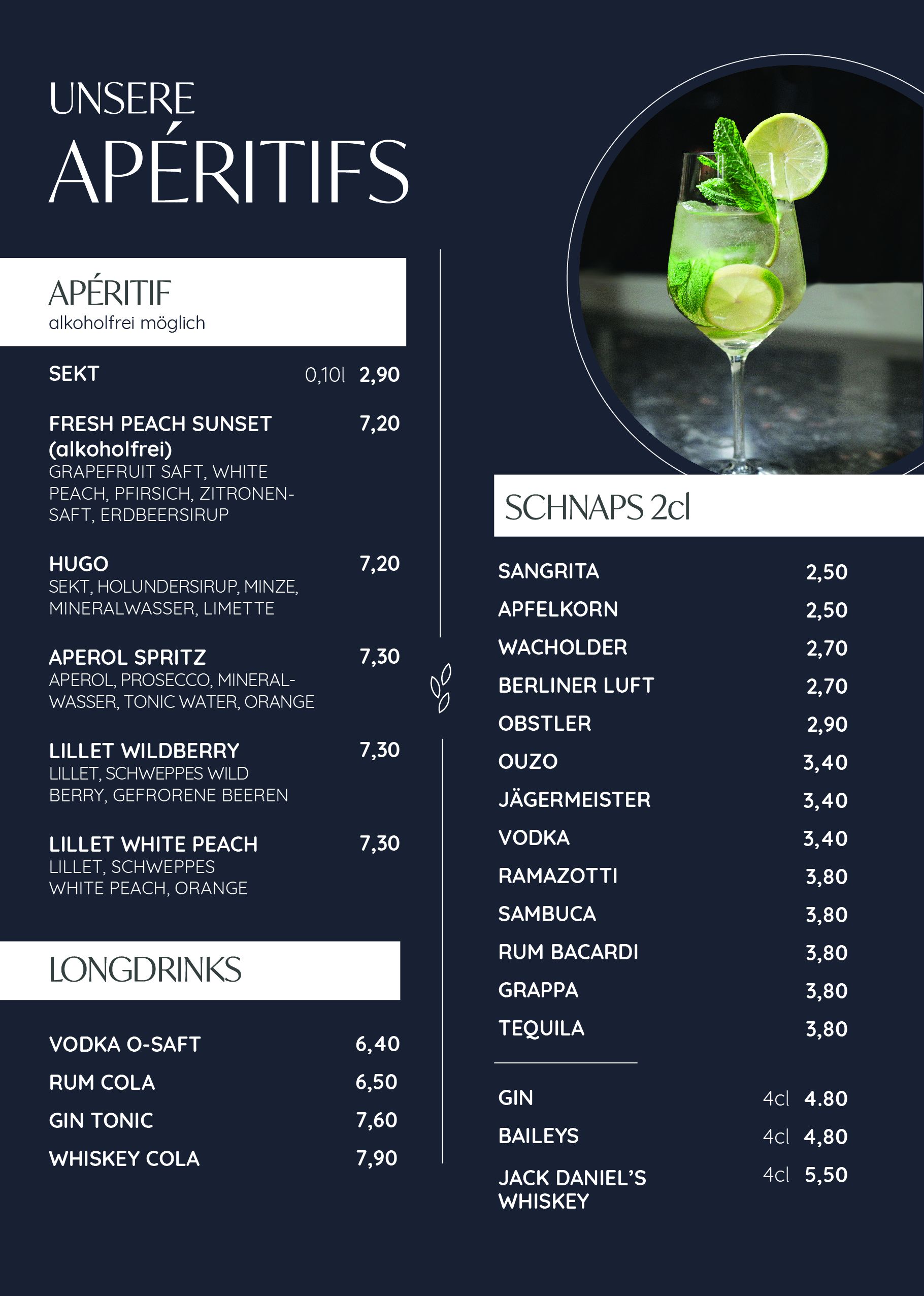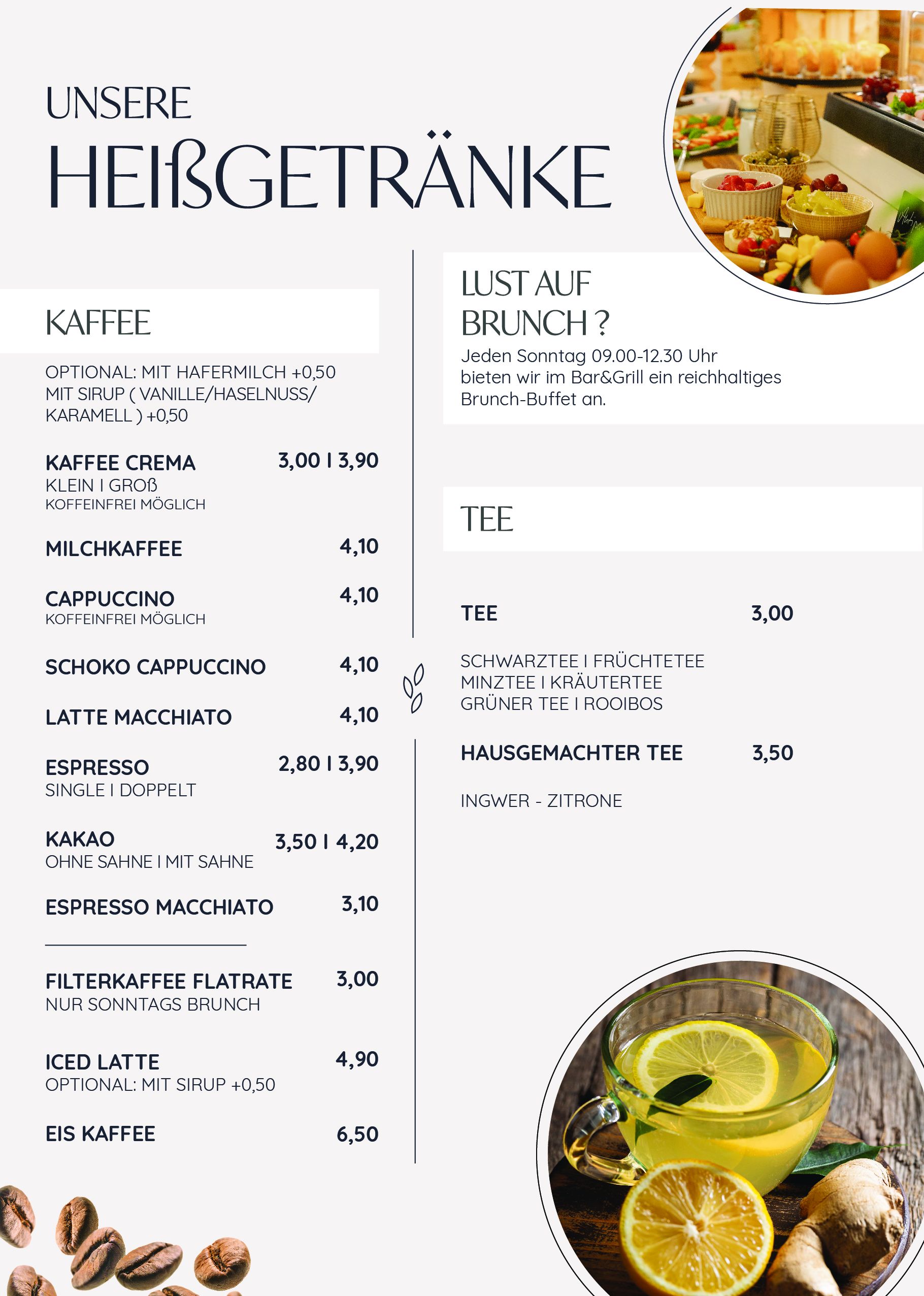 Aktuelle Speisekarte & Getränkekarte