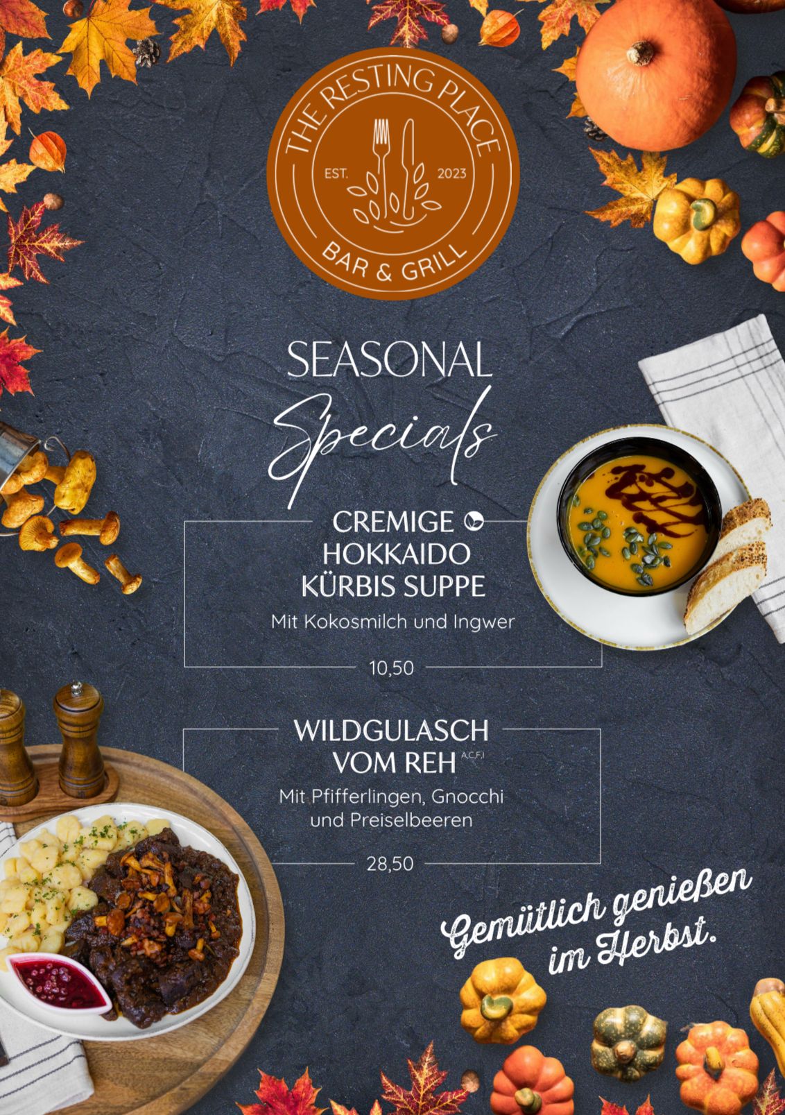 Herzlich Willkommen in unserem Bar & Grill, wo unsere herzhaften Gerichte auf Gemütlichkeit treffen! Hier erhältst du frisch vom Grill Spare Ribs und Pulled Pork Burger und ebenfalls servieren wir Schnitzel mit hausgemachten Spätzle, Steak mit Bohnen im Speckmantel und so vieles mehr.  Und für alle die nicht ohne Dessert gehen wollen gibt es saisonale Leckereien und cremigen Kaffee zubereitet mit viel Liebe.