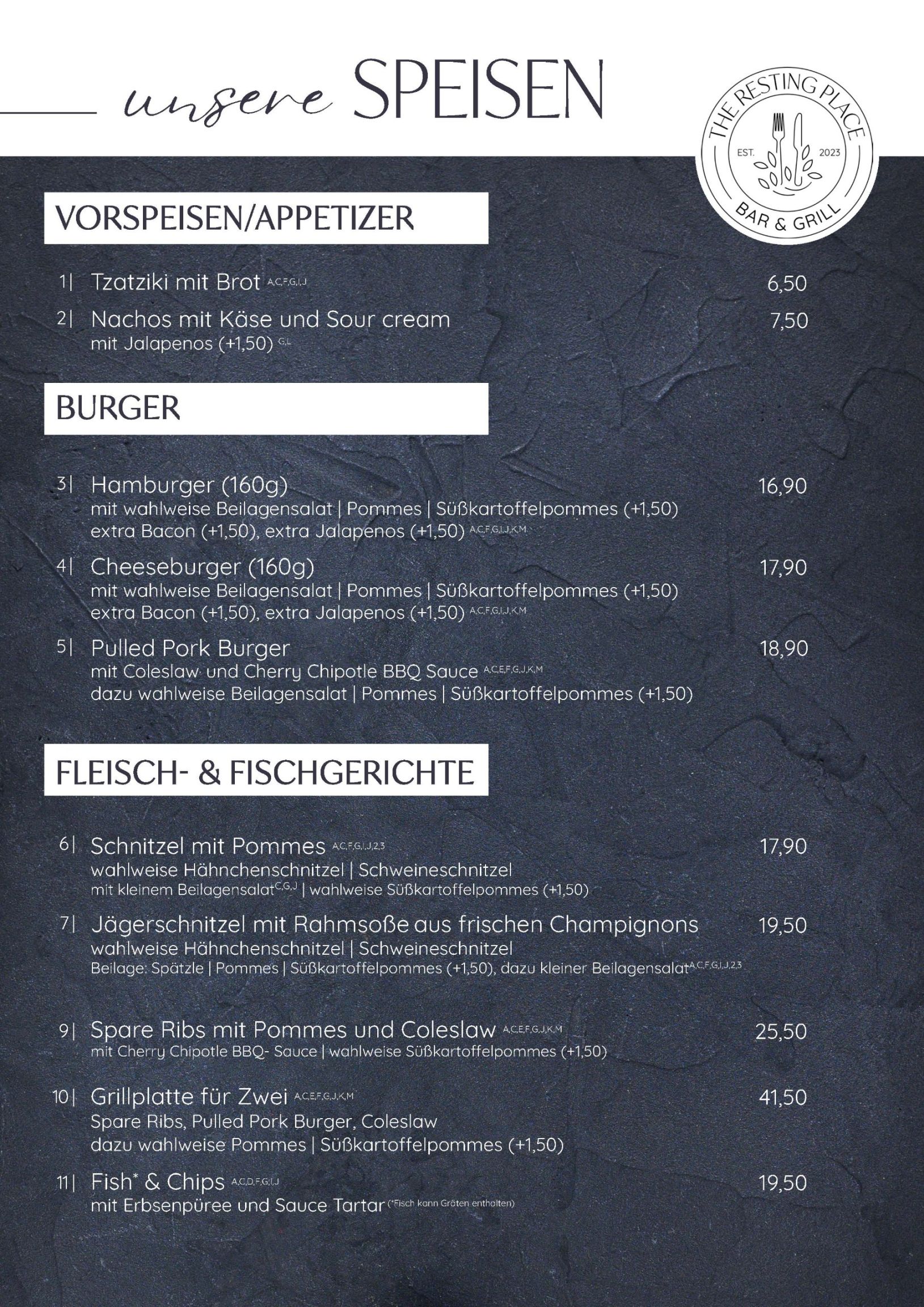 Welcome to our Bar & Grill, where our soul food meets coziness! Here you can get freshly grilled spare ribs and pulled pork burgers. We also serve german Schnitzel with homemade Spaetzle, steak with green beans in a bacon coat and so much more. And for those who do not wanna leave without dessert, there are seasonal treats and creamy coffee prepared with love.
